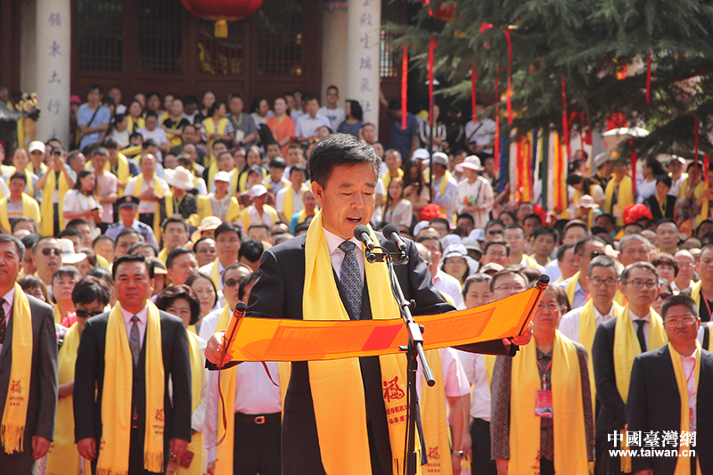 平凉市市长王奋彦恭读谒礼文。(中国台湾网 普燕 摄)