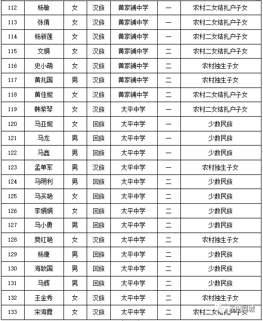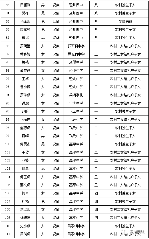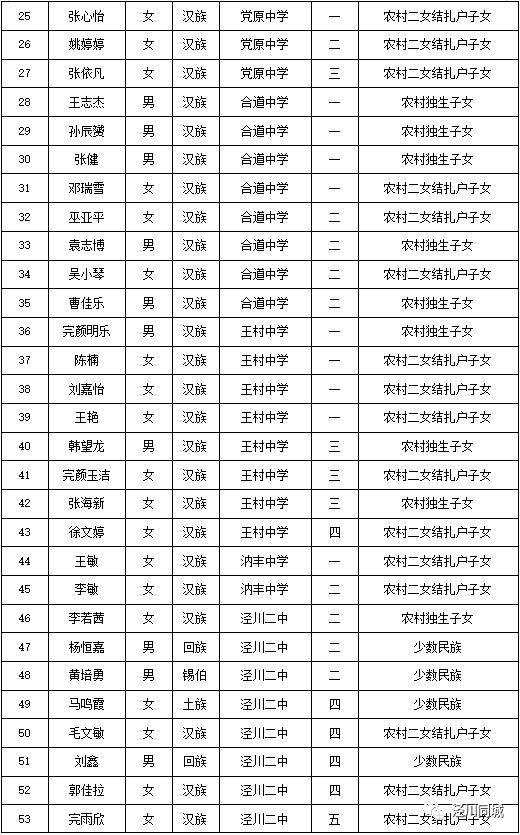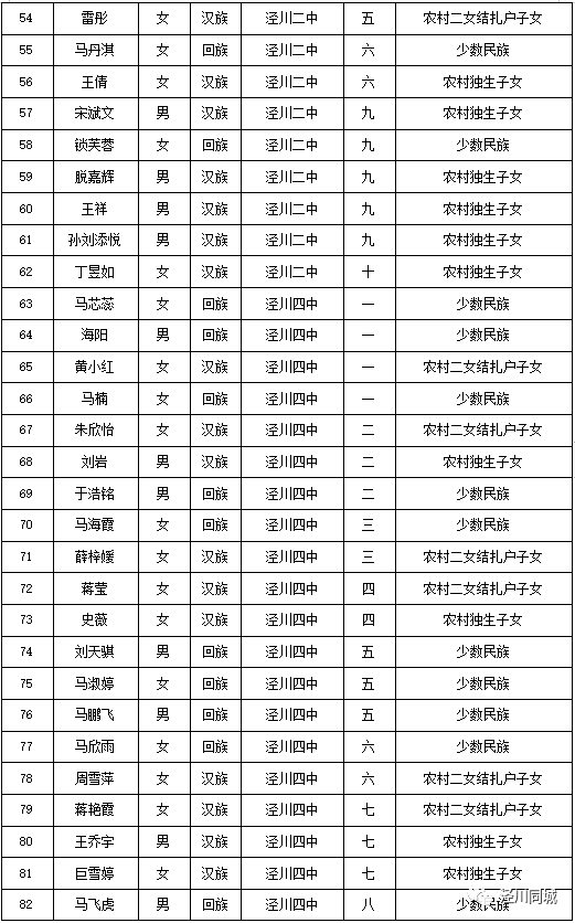 附件:泾川县2023年中考享受照顾考生名单