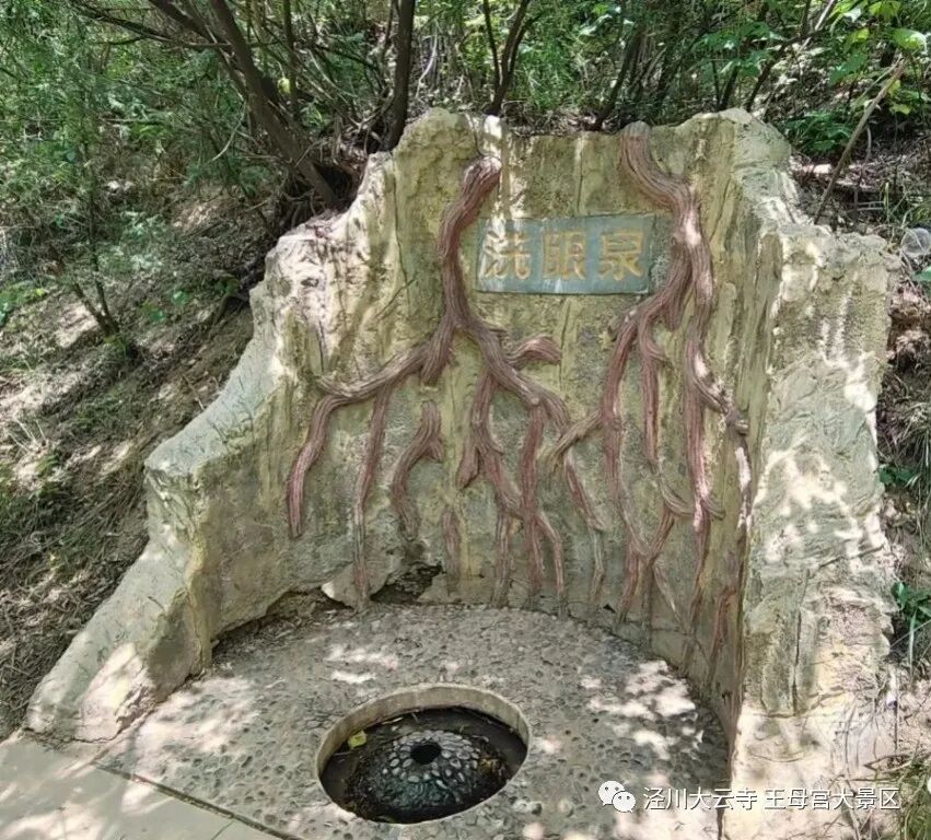 洗眼泉位于灵官庙正下方,泉水甘甜爽口,最神奇的地方在于它一年四季水位一直如此,不升不降。据专家检测,它的水质等多项指标均达到国际免检标准,因此是稀有的偏矽酸矿泉水。