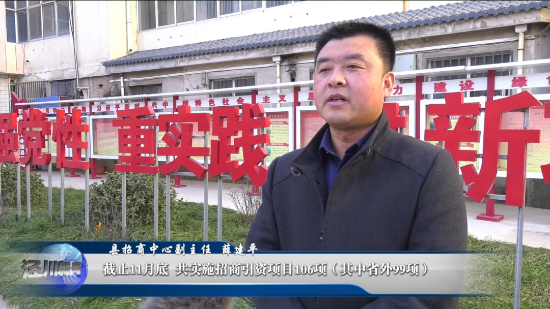 【县招商中心副主任 薛建平:截止11月底,共实施招商引资项目106项 (其中省外 99项),总投资 89.76 亿元(其中省外投资 77.54 亿元),落实到位资金 53.87亿元(其中省外到位资金 51.34 亿元),分别同比增长 111.74%、137.34%。到位资金实现翻番,项目数量、签约额、资金到位率均为近年来最好成绩。下一步,我们将围绕全县八大重点产业链,创新方式精准招商,广泛对接引进项目,全程保障服务落地,助推全县经济社会高质量发展。】