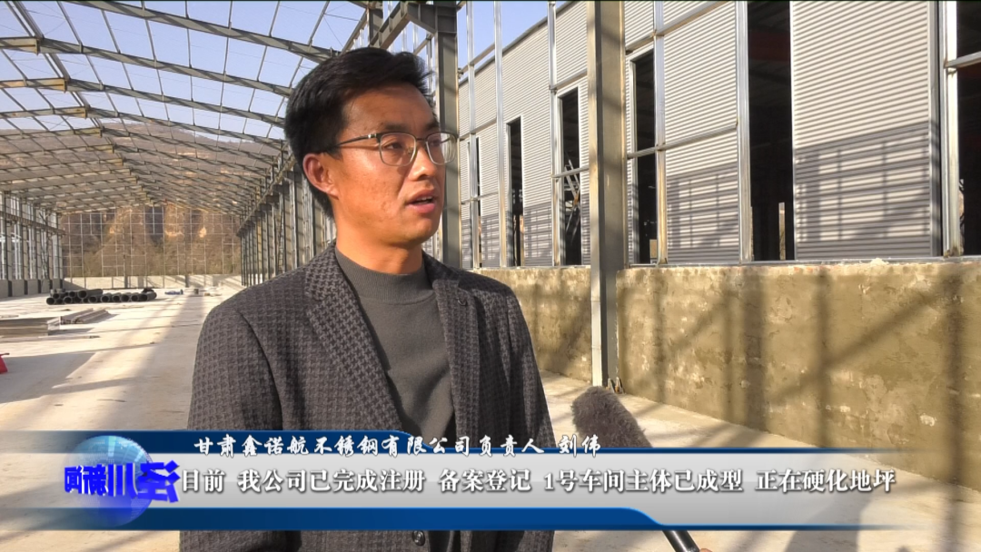 【甘肃鑫诺航不锈钢有限公司负责人 刘伟:目前,我公司已完成注册、备案登记,1号车间主体已成型,正在硬化地坪,2号车间钢结构工程已完工,正准备搭墙瓦和顶瓦,办公楼主体已建成,公司计划12月底投产,年产值可达7000万元左右,实现利税140万元,可带动当地就业人数40多人。】
