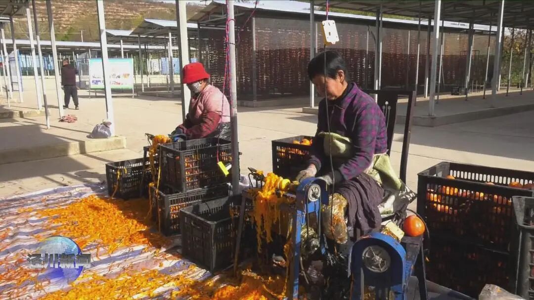 在柿子加工车间,一筐筐柿子堆积如山,村民们眉开眼笑的或推着手推车,或登着三轮车,络绎不绝的将自家产的柿子往来运送。有的村民正忙着将柿子装框,有的在过秤,有的在计算收入,柿子畅销溢于言表。