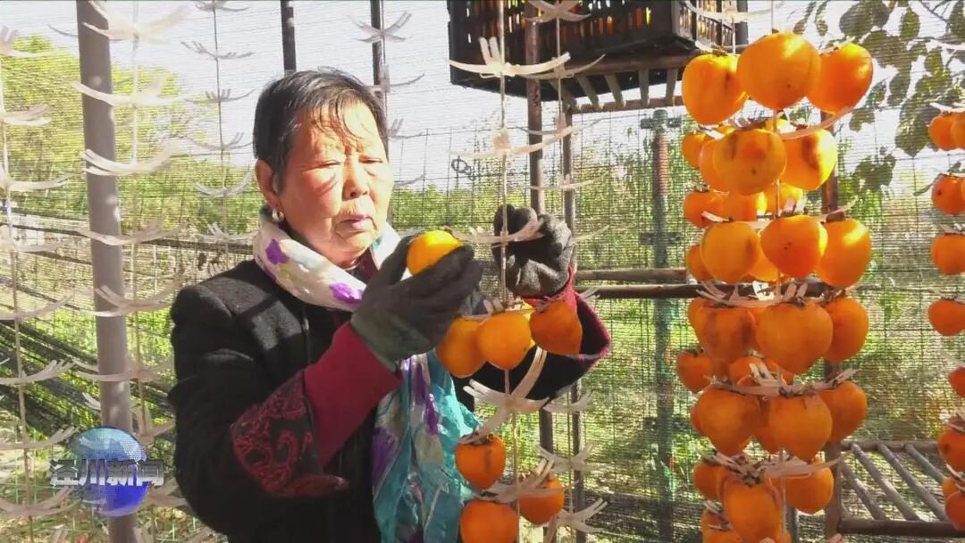 【县恩源种植有限公司总经理 吕建伟:我们公司今年对罗汉洞乡柿子订单式收购,鲜柿子订单2000吨,柿饼订单500吨,带动周边劳动力50人左右,目前产业大概在500到600万。】
