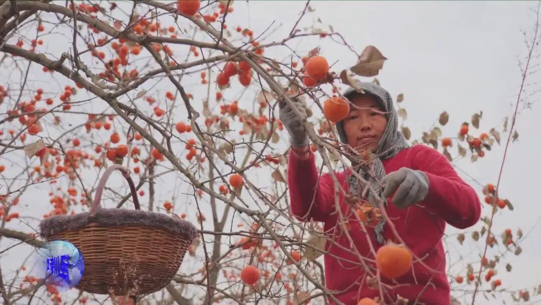 【城关镇东俺村村民 史金辉:我有一亩地,大概有30多棵树,今年的产量相对也可以,能摘5000斤柿子,卖3000多元,柿子树是个粗管理,不修枝剪体,也不用施肥,到采摘的时候一摘就行了,一亩地能卖3000多元,还可以。】