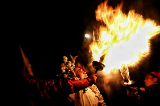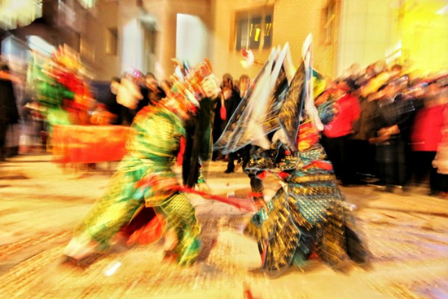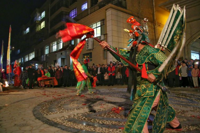 武社火的表演者们,清一色的武装短打扮,身着紧身的民族武装,或黑,或青,或蓝,要么白如皓月,红如炭火。也有头上有戴传统的英雄帽,有以青、红、白、黑等色的布缎罩头,可谓英姿飒爽,非同一般。他们伴随着古朴雄浑的鼓点,手挥刀、枪、剑、棍、十八般武器,真刀真枪绝不含糊。或有个人献艺者,或有二人对打者,或者三打一的,有时甚至有“群狼扑虎”的若干人围打一人的。总之,刀来棍去,枪到戟往,令人眼花缭乱,心跳不已。