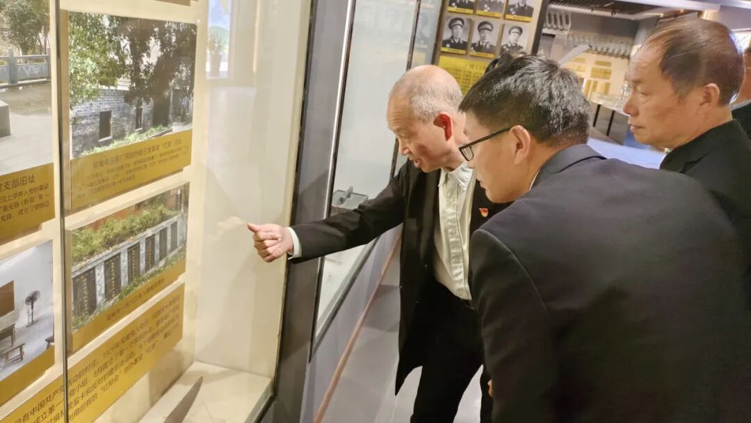 祭扫仪式结束后,代表团一行走进吴焕先烈士事迹展厅。院内,在吴焕先烈士半身铜像前,代表们深情凝望、久久驻足,和煦的一缕缕阳光打在他们的面庞上,和晶莹的泪花交融在一起,诉说着对未曾谋面亲人的深切思念。在讲解员的引领下,参观了吴焕先烈士的丰功伟绩和波澜壮阔的革命生涯,尤其在听到吴焕先烈士毁家纾难、破家革命而导致一家6口亲人被杀害的情节时,代表们潸然泪下,满腔悲愤。参观过程中,吴建华为我们分享、补充了一些鲜为人知的有关吴焕先烈士闹革命的史实,既增长了我们的见识,也让吴焕先烈士的形象更加饱满。