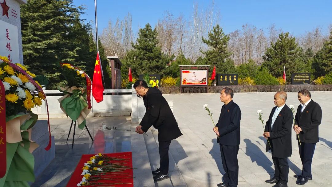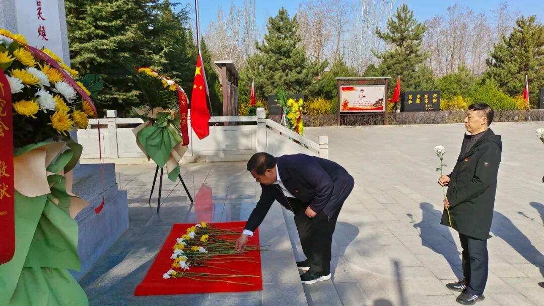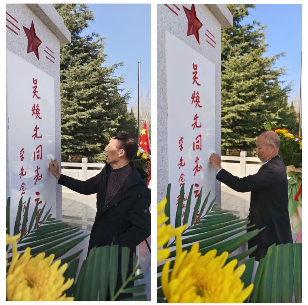青山埋忠骨,鲜花敬先烈。吴焕先烈士陵园松柏苍翠、山花烂漫。上午九时,祭扫仪式正式开始,代表团全体人员在吴焕先烈士墓前奏唱国歌、宣读祭文、敬献花篮鲜花、鞠躬默哀、擦拭墓碑、瞻仰祭奠,向长眠于宝盒子山下的吴焕先烈士表达深切缅怀和无限哀思。