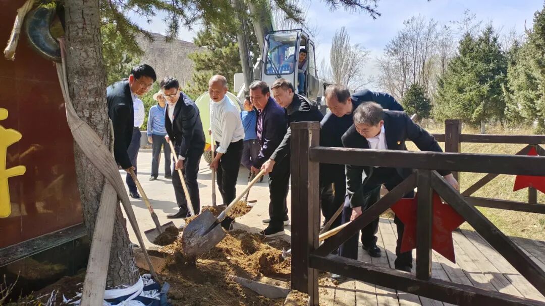 同栽一棵树,永远一家亲。由泾川县社会爱心人士刘旭东为我馆无偿捐赠了两棵20年树龄高8米的雪松,代表们与纪念馆班子成员,共同为两棵雪松培土,让这两棵“友谊树”共同见证吴焕先烈士纪念馆与河南新县吴姓文化研究会的深情厚谊。