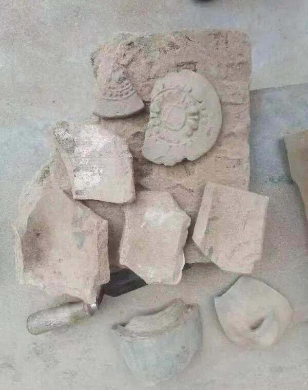 调查结束后,田书林、田伟将之前在该区域搜集的大量建筑残件捐赠给了泾川县博物馆。残件包括板瓦3件、筒瓦2件、方砖2件、手印砖3件、琉璃瓦4件、残瓦当2件、屋脊残件1件以及其他残构件。刘玉林先生认为这些建筑残件具有典型的唐代风格,应为唐代建筑残件。