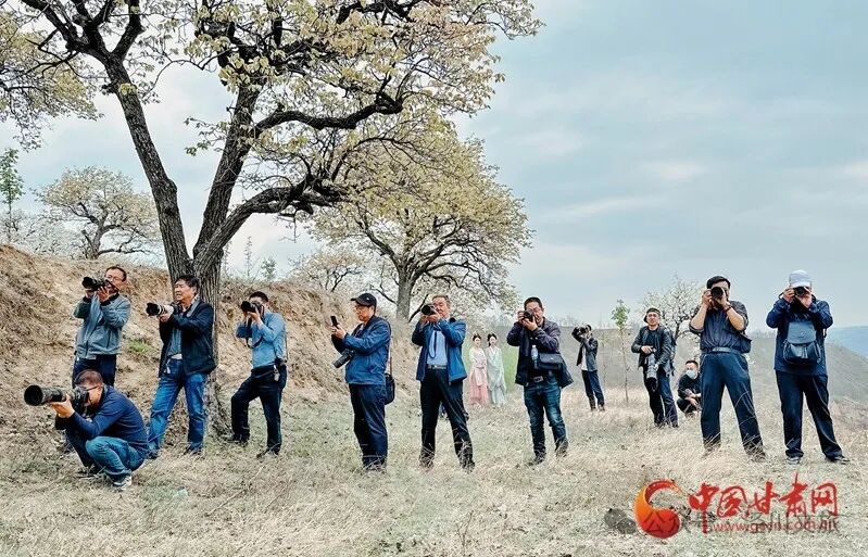 在泾川县王村镇薛家庄古梨园,洁白的梨花在风中摇弋,模特们古装翩翩,与梨园形成一体,凸显出美的神韵。摄影师们纷纷用手中镜头捕捉春天的生机与活力,用光影记录人文之美,感受大自然的神奇与美丽。
