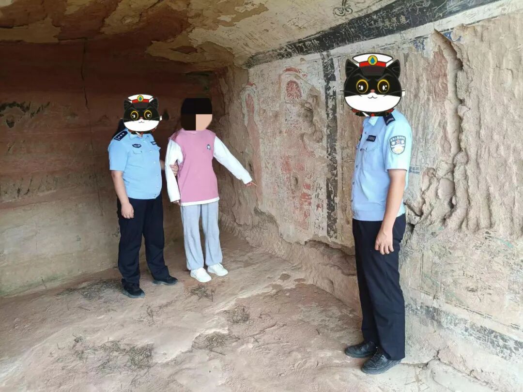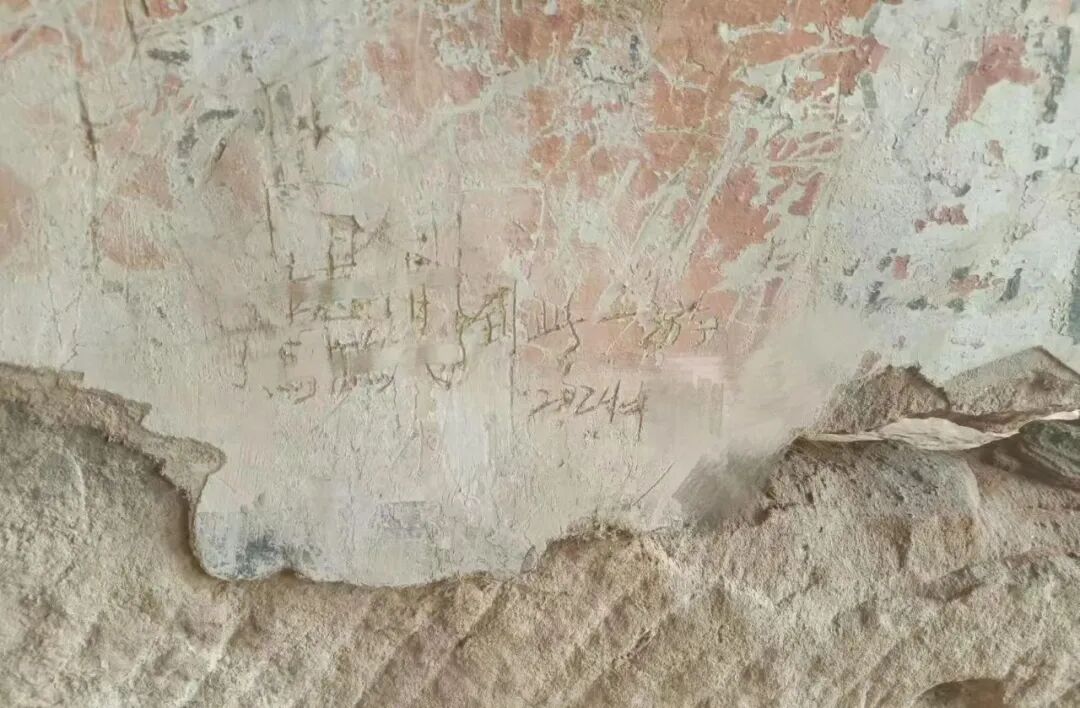 近日,一名游客在罗汉洞石窟游览时,用木棍在18号石窟的壁画下方刻下“姓名、日期和到此一游”的字样,县文旅局巡视人员发现并报警。接报后,罗汉洞派出所民警立即开展调查取证工作,经现场勘验及调取案发周边视频监控迅速锁定嫌疑人特征,并追踪查看沿途监控,成功掌握嫌疑人古某身份信息及活动轨迹,随立即将其传唤到案。