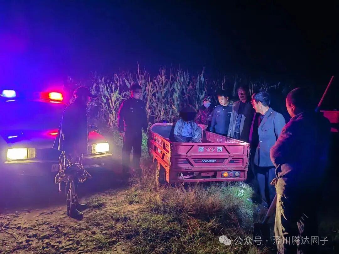 彼时,室外气温已骤降至11摄氏度,山间小路两侧的草丛高过膝盖,经雨水浸泡后湿滑难行,夜间视线更是模糊不清。“群众安危刻不容缓!单靠民警搜救效率有限,必须发动村民一起找!”接警后,值班民警第一时间启动应急救援机制:一边通过电话耐心安抚家属情绪,详细询问乔某外出时间、大致方向及衣着特征;一边火速联系塬梁村村干部,让其通过村微信群、上门通知等方式,动员熟悉地形的村民参与搜救。