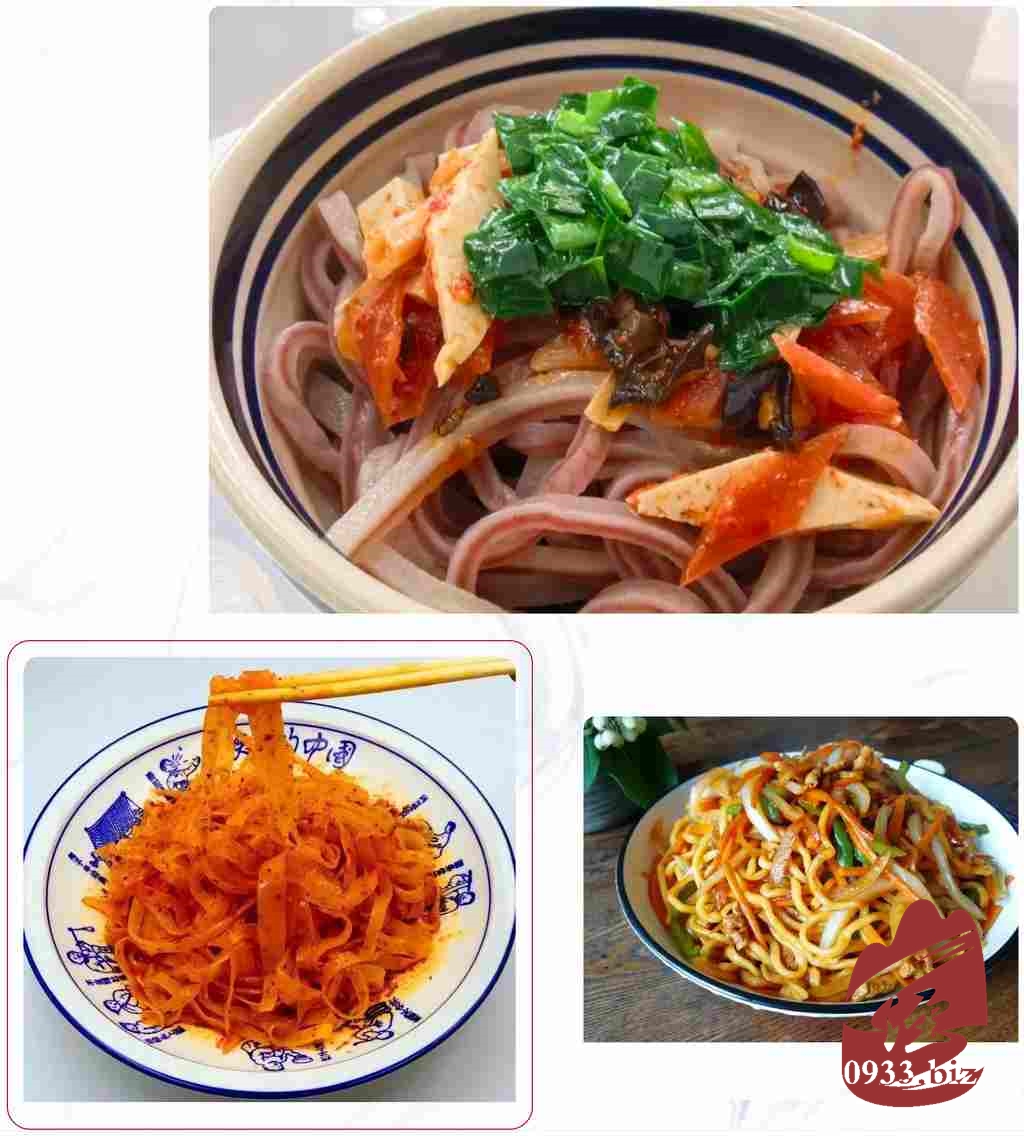 正午,小麦面、高粱面层层叠加擀制而成的花花面,浇上臊子与油泼辣子,酸辣鲜香,筋道爽滑。想吃得扎实,便选手工拉制的炒面,肉丝、青椒同炒,酱汁裹面,锅气十足。